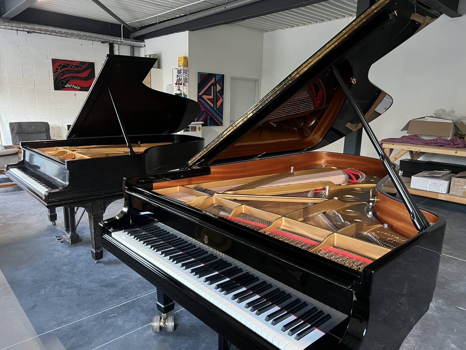 Il s’agit de deux Steinway Modèle C : l’un a été fabriqué à New York il y a 135 ans, l’autre à Hambourg il y a 40 ans. Deux instruments très différents, tant par leur sonorité que par leur toucher, mais tous deux magnifiques et riches en couleurs musicales.