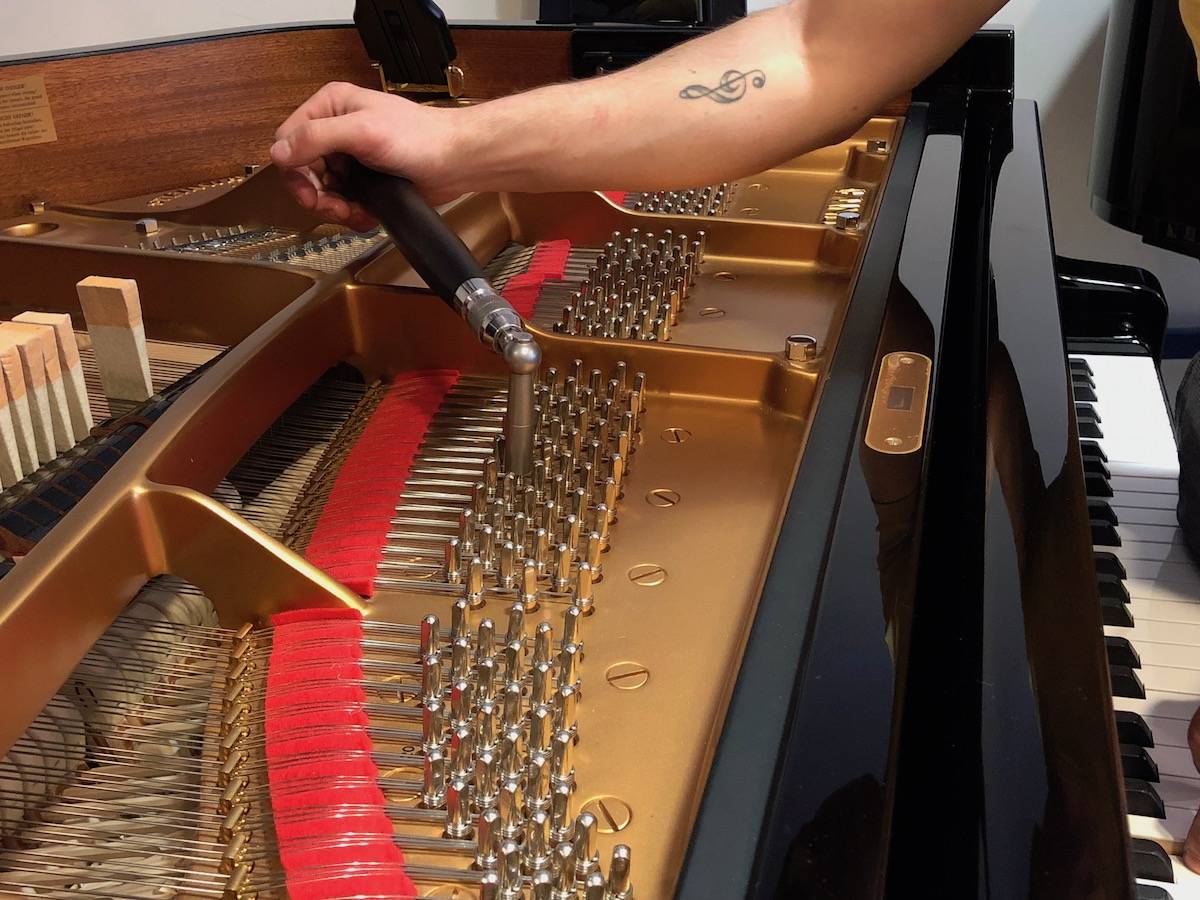 Il y a entre 15 et 20 tonnes de tension au niveau des cordes dans un piano, ce qui fait que naturellement il se désaccorde tout seul, qu’on y joue ou pas. Les variations de températures et d’hygrométrie joue aussi un rôle important dans le phénomène de désaccordage.