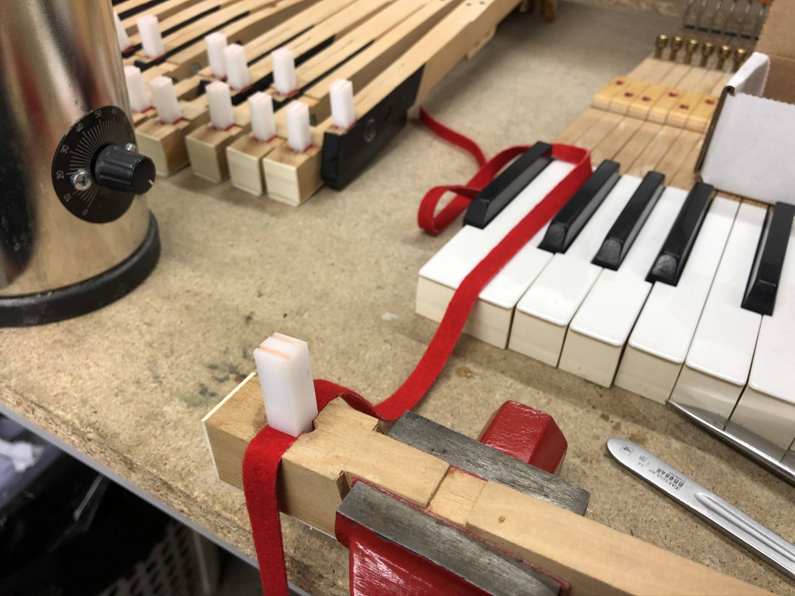 C’est pourquoi il devient nécessaire, à un certain stade de la vie de votre piano, de procéder au remplacement complet de ces mortaises. Cette intervention permet de restaurer la qualité et la régularité du contact entre les touches et la mécanique, ce qui se traduit par un toucher plus précis, plus souple, et plus agréable.